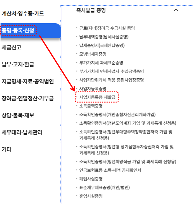 사업자등록증 재발급