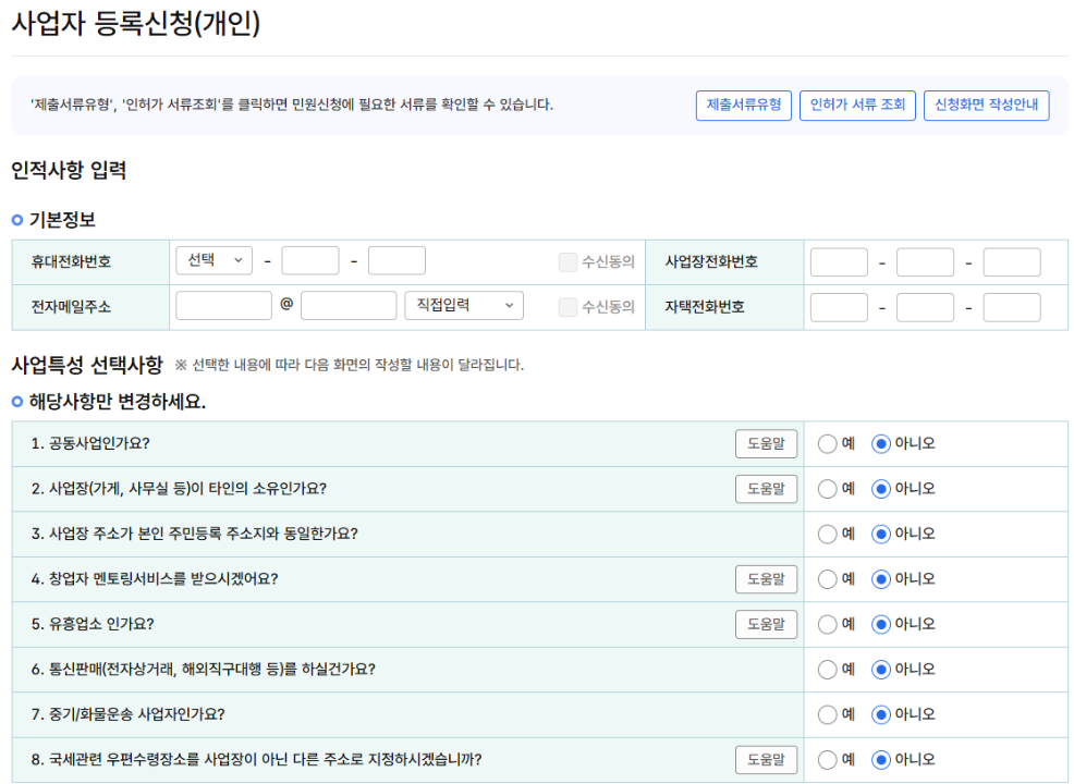 2️⃣ 사업자등록 신청서 작성 및 제출