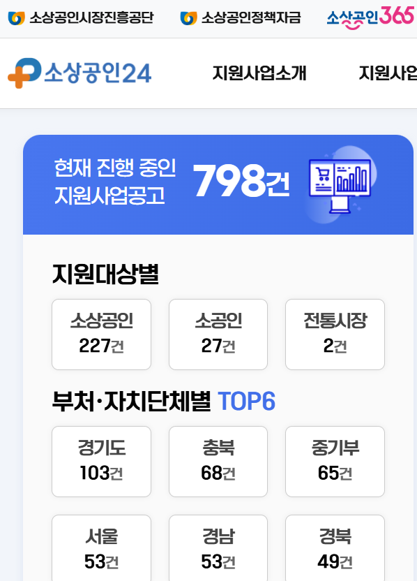 - 지원 내용: 소상공인 지원사업 안내 및 온라인 신청 가능