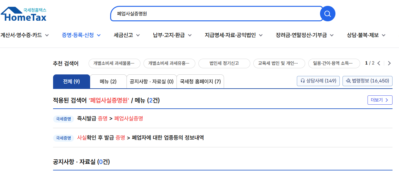 홈택스를 이용하면 간편하게 폐업사실증명원을 발급받을 수 있어요.